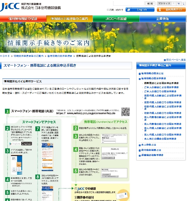 ネットで検索してみると、JICCはスマホ、携帯電話で個人認証を取り、郵送の手続きを取り、代金はクレジットカード払い。