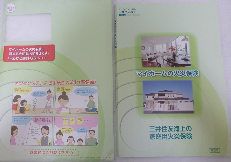 契約書を返送してしばらく後、SBI銀行の紹介の火災保険の案内が送られてきました。